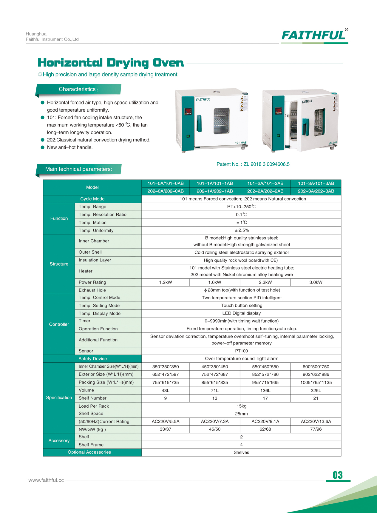 Temp. Uniformité | 101 Modèle: ± 2,5%, 202 Modèle: ± 3,5% | ||||||