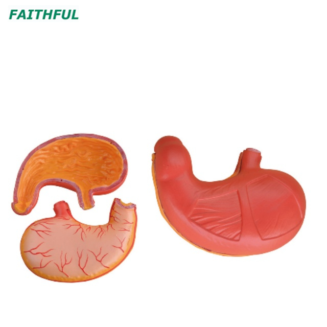 Avec la section longitudinale, le modèle montre les structures des plis gastriques, de la valve pylorique, des muscles du sphincter pylorique, de la muqueuse gastrique et de la muqueuse transitionnelle de l'esophage gastrique. Fabriqué en plastique dur et amplifié 2 fois de la taille naturelle.