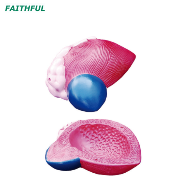 Ce modèle montre la vessie urinaire masculine avec l'urètre de la prostate. Disséqué médialement pour exposer à la fois les structures internes et externes.