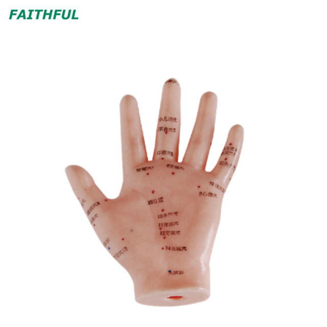 Ce modèle montre l'emplacement de 20 points d'acupuncture sur la main Dorsum et 13 points d'acupuncture sur la paume marquée de caractères ou de chiffres chinois. Une brochure anglaise et chinoise décrivant les points est incluse.