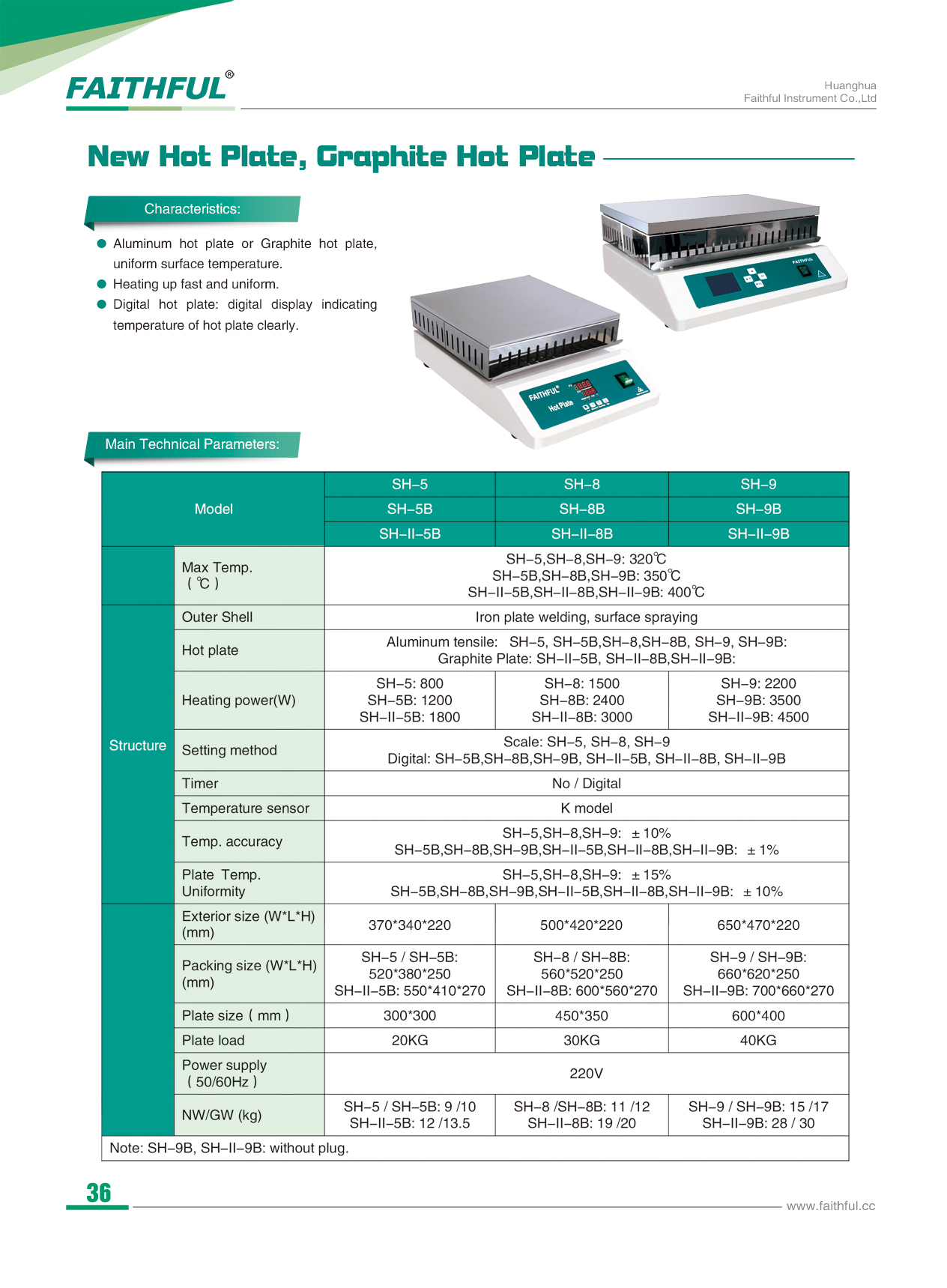 Chaud plaque | Aluminium Tensile: SH-5, SH-5B, SH-8, SH-8B, SH-9, SH-9B: Assiette en graphite: SH-II-5B, SH-II-8B, SH-II-9B: | |||