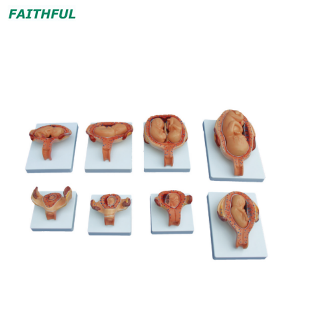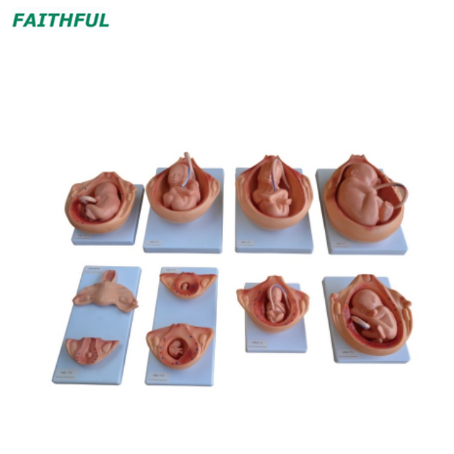 Ce modèle montre la relation entre le fœtus et l'utérus dans le cours de la grossesse et des jumeaux du 1er, 2e, 3e, 5e, 6e, 7e mois et des jumeaux.