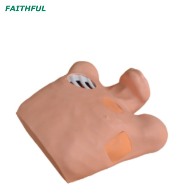 Features:1)Pneumothorax decompression, closed chest drainage ofhydropneumothorax and drainage tube care after operation carbe practiced.2) There are two visual windows in right thorax to show eachlayer ofanatomical structures.3)Pneumothorax decompression training, closed drainage ofhvdropneumothorax training and thoracocentesis training inthe thorax gauche.4) La couleur, le volume et la viscosité de la solution de drainage peuvent être régulés.
