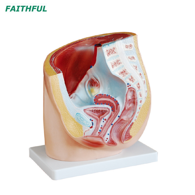 Le modèle de section médiane montre que les organes génitaux féminins avec le rectum de la bladdeland, les muscles de l'abdomina et du bassin sont détaillés montrés en plastique PVC.