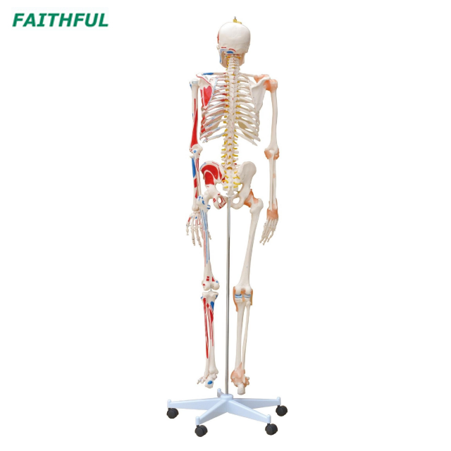 Sur la base de XC-101, ce modèle est peint pour montrer les muscles et les ligaments. Le côté gauche du squelette montre les points d'origine (rouge) et les points d'insertion (bleu) des muscles.