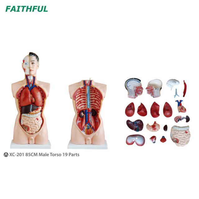 Ce torse éducatif le plus populaire comprend 15 parties, notamment le torse, le cerveau (2 parties), le calvarium coupé, le cœur, le poumon (4 parties), l'estomac, le diaphragme, le foie, le cœur, la trachée et l'œsophage et l'aorte, le pancréas et la rate.