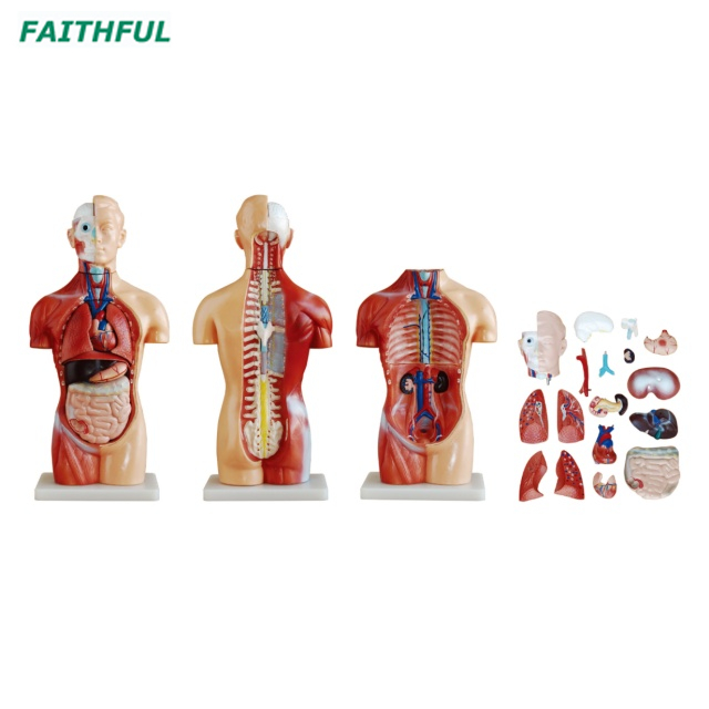 Ce modèle sans sexe comprenant 18 parties dissectibles: torse, tête, cerveau, trachée, œsophage et aorte descendante,